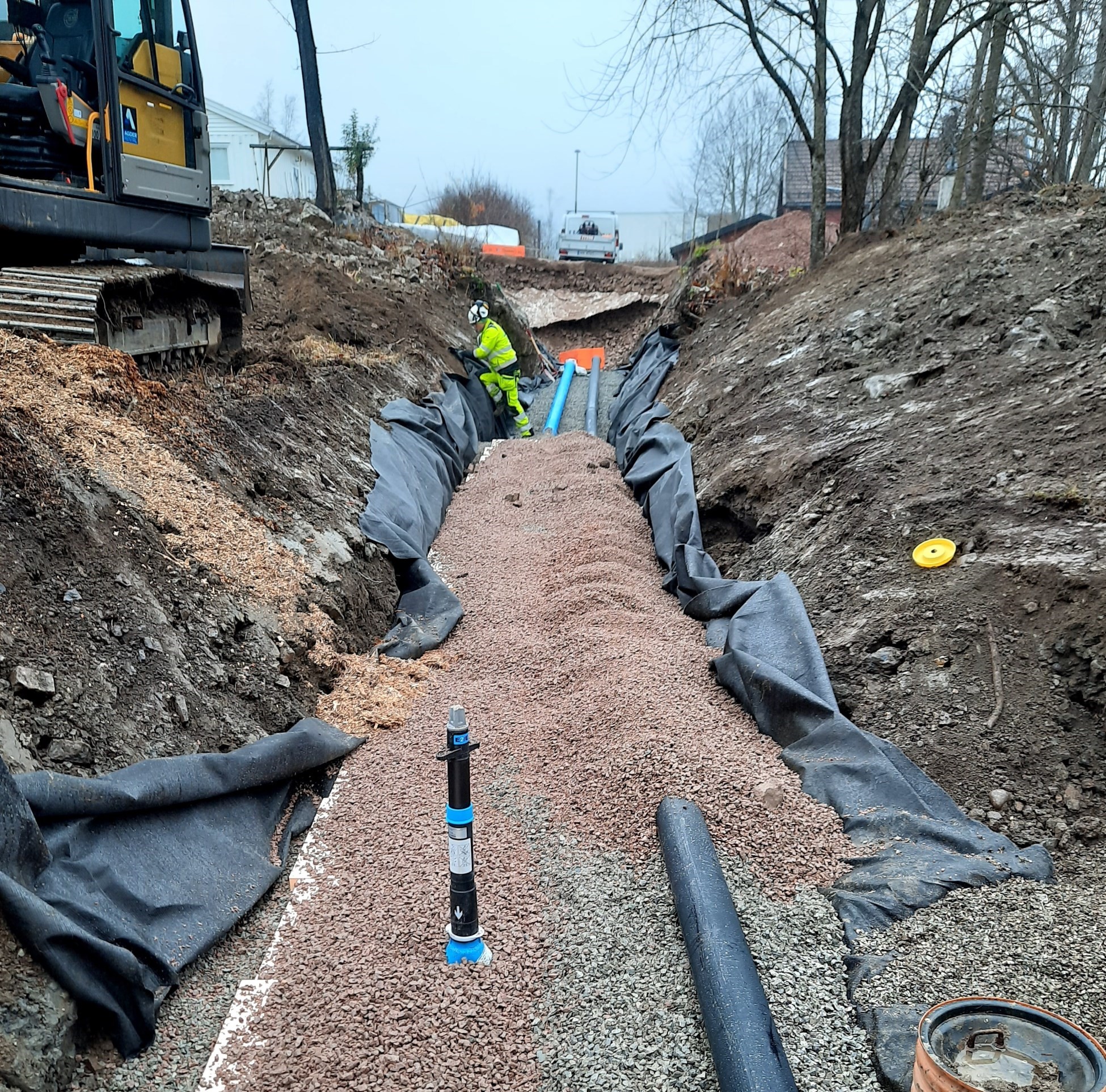 Vi utfører alle slags grøftearbeider, som overvann-, drenering- VA- og kabelgrøfter.
