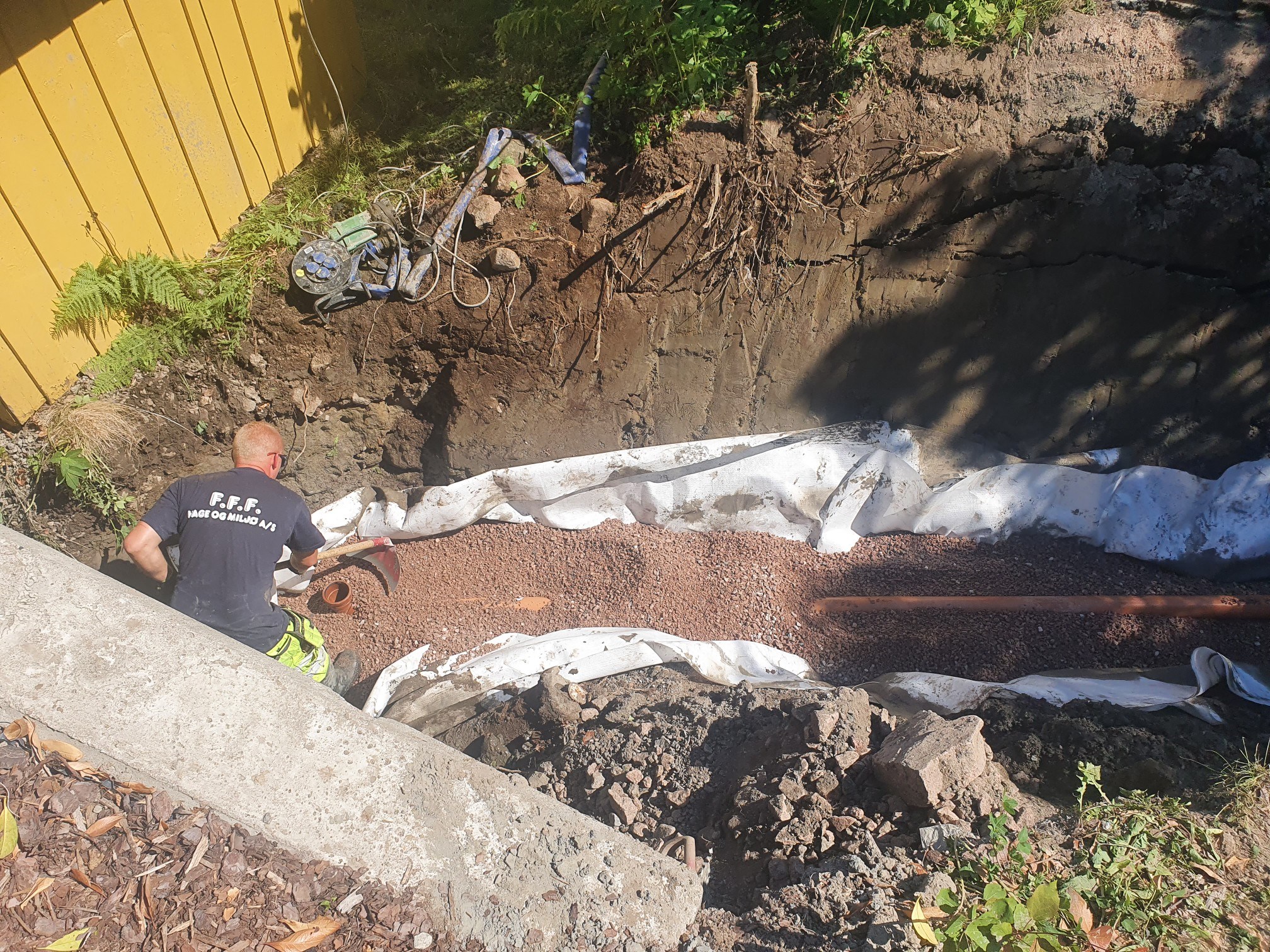 Prosjektet omfattet støping av kaianlegg med dokk, samt opparbeidelse av områdene rundt. Det ble etablert tredekke, natursteinsmurer og en sjarmerende liten sandstrand, som ga området både et estetisk løft og økt funksjonalitet. Arbeidet ble gjennomført i tett samarbeid med vår underentreprenør, Stenseth & RS Entreprenør AS, som hadde ansvar for betongarbeidene.